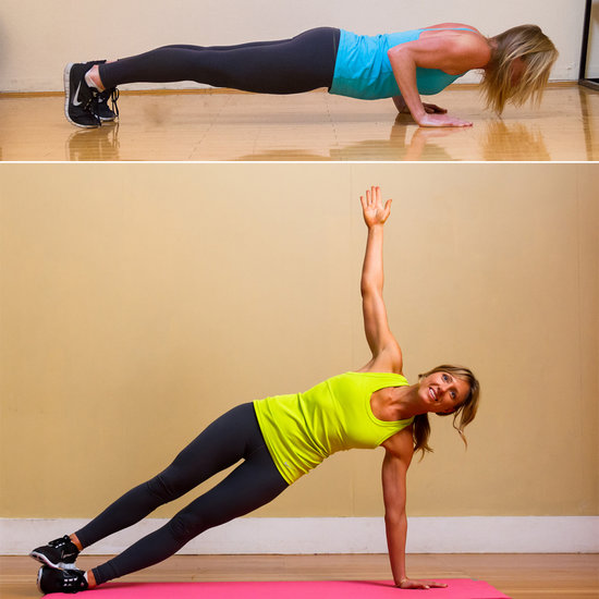 - Begin in a plank position (the top of a push-up) and roll over to your left side and plant your left heel down so you are balancing on the outside edge of your left foot. Stack your right foot on top of your left. If this is too hard, bend your left knee and place your left foot flat on the ground in front of your right leg for support.